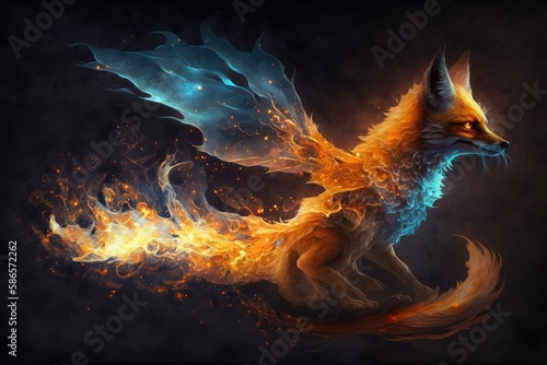 A creature resembling a cross between a fox and a dragon, with the ability to fly background Generative AI Generative AI
