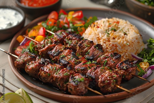 A Culinary Journey to Turkey: Skewered Kebab Platter with Rice and Salad