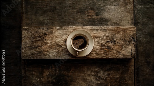 A cup of coffee on a rustic wooden surface.