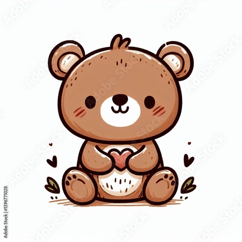 A cute brown teddy bear toy with a red heart shows animal love in a sweet cartoon illustration