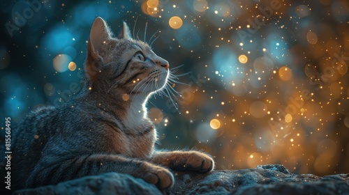 A cute cat looking up at the stars in awe