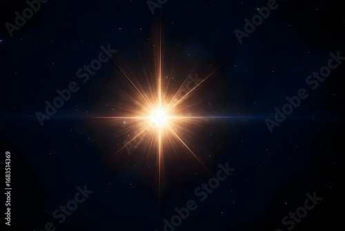 A dazzling lens flare shining in the darkness