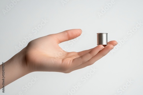 A delicate hand presents a tiny metallic container in soft light for a moment of contemplation isolated on transparent background