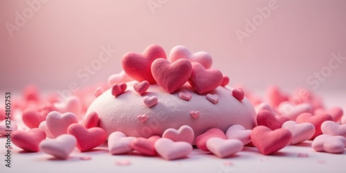 A Delicate Pink Heart-Shaped Treat, Adorned with Numerous Smaller Hearts, Resting on a Bed of Similar Delicate Hearts, Evoking a Romantic and Sweet Feeling.