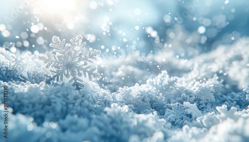 A Delicate Snowflake Resting on a Bed of Glittering Snow