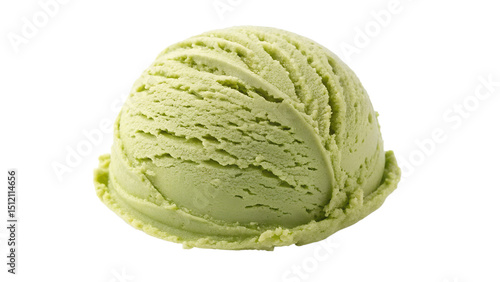 A delicious scoop of green mint pistachio ice cream is isolated and partially blocked by ice, ready to be enjoyed as a cold dessert
