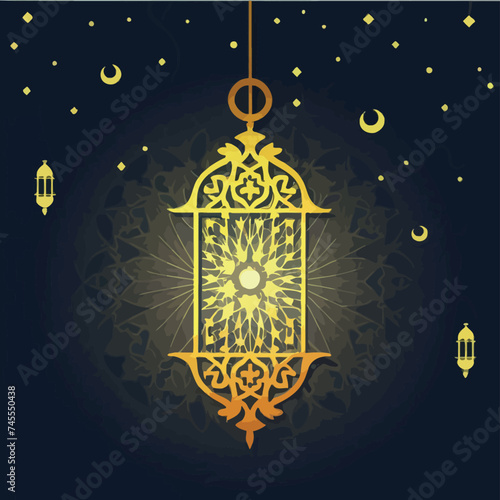 A design for a Ramadan lantern decorated with an Islamic ornament and illuminated dazzlingly from the inside