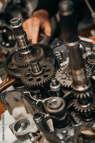 A Detailed Closeup Photograph Showcasing Mechanical Engine Components During Their Work Process