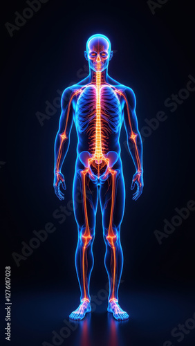 A detailed medical illustration of a human skeleton with visible nerves, including the Vagus Nerve Stimulation (VNS) device.