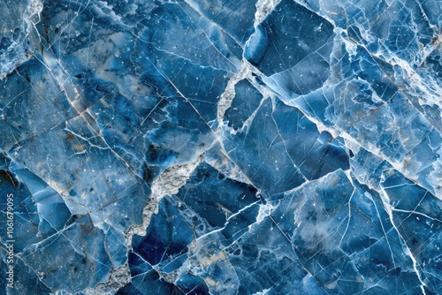 A detailed view of a blue marble surface with intricate patterns and textures