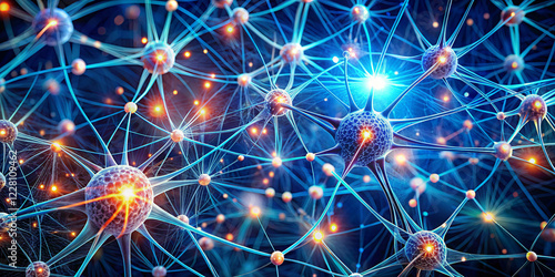 A detailed visualization of a neural network showcases interconnected neurons. Glowing nodes and vibrant pathways represent information flow within the brain's complex system