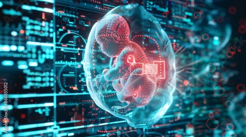 A digital illustration of the potential future advancements in test tube baby reproduction, with holographic displays