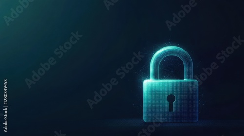 A digital lock symbolizing cybersecurity and data protection, set against a dark background with glowing blue highlights.