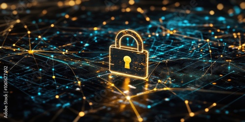 A digital padlock appears over a network map, emphasizing the importance of encryption in global data protection, with no people present.