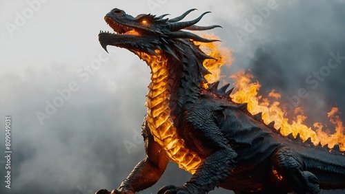 A dragon breathing fire isolated on transparent background.
