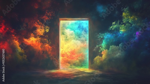 A dreamy artwork with a mix of vibrant colors that shine like rainbows on a dark background. It's like looking through a 3D glass window.