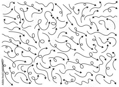 A dynamic collection of hand-drawn arrows scattered across a white background, each pointing in a different direction, offering a sense of movement and guidance. The arrows are varied in style.