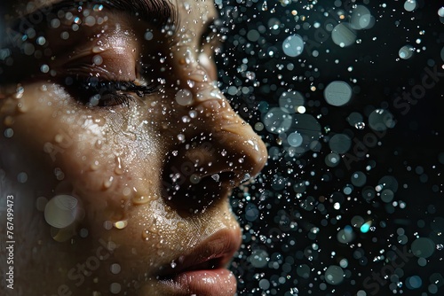 A dynamic shot of someone applying facial mist capturing the droplets in motion