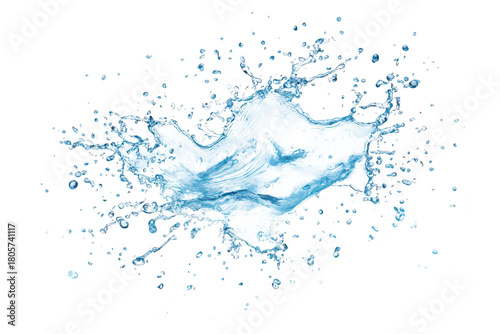 A dynamic splash of clear blue water captured in mid-air. the fluid motion and droplets. ideal for backgrounds or designs emphasizing freshness and vitality