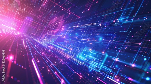 A dynamic technology-themed background with luminous blue and purple lines forming intricate geometric shapes, creating a sense of depth and digital sophistication