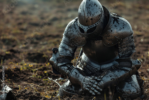 A fantastic royal knight in armor guards the castle chambers