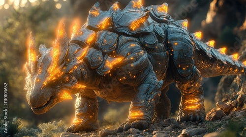 A fantastical creature resembling a rocky tortoise with glowing lava-like features.