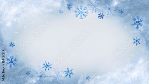 A festive blue background adorned with delicate snowflakes evokes a winter wonderland ideal for Christmas cards or winter designs