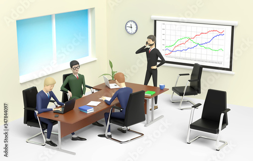 A few men are conferring in the office. 3D illustration