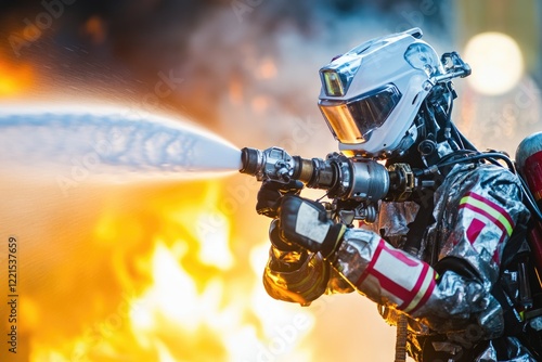 A firefighter using a hose to extinguish a fire