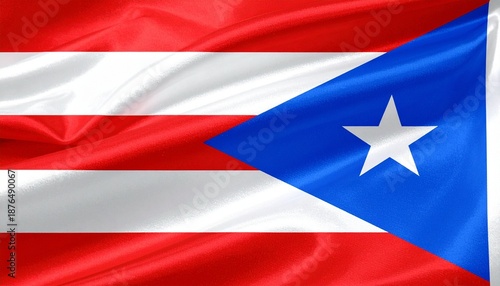 A flag with five horizontal stripes alternating red and white, and a blue triangle on the hoist side with a white five-pointed star, displayed against a white background, representing Puerto Rico.