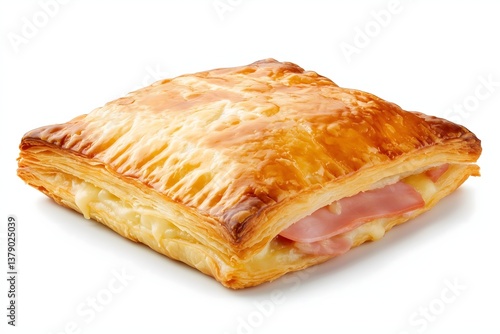 A flaky and golden brown puff pastry isolated on a white background