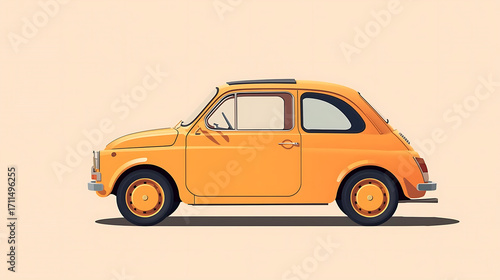 A flat digital illustration of a small, orange vintage car against a solid orange background.