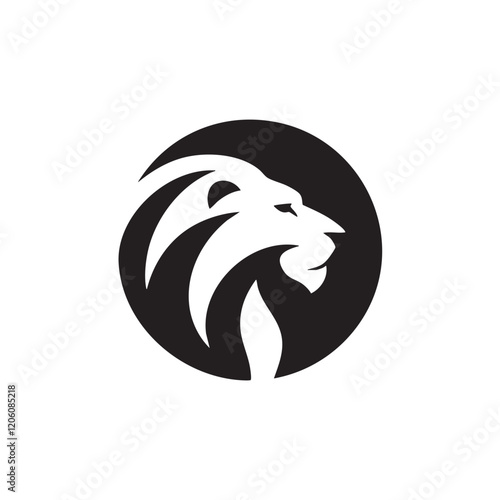 A flat silhouette of a lion’s profile inside a circle, with minimal detailing for a sleek logo, black silhouette on a white background....