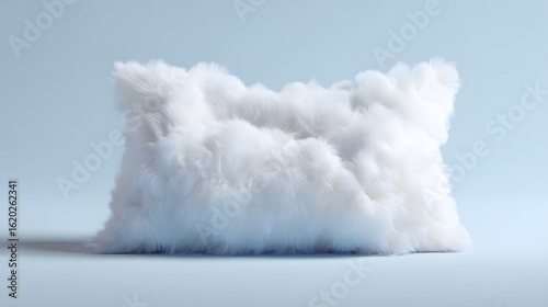 A fluffy pillow shaped like a cloud, set against a soft blue backdrop
