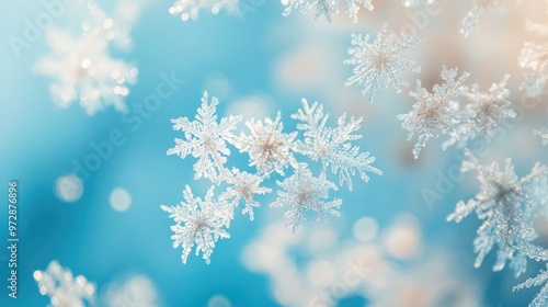 A flurry of delicate snowflakes scattered across a soft blue background, capturing the beauty of winter simplicity