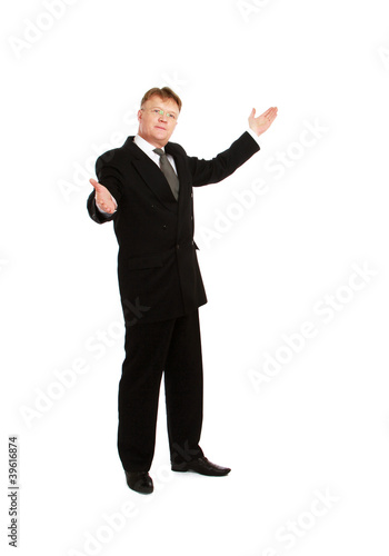 A full-length portrait of a successful businessman