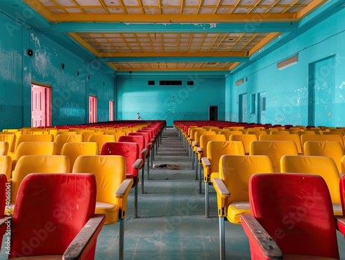 A ghostly theater with empty seats, the echoes of applause and forgotten performances haunting the air