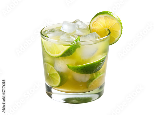 A glass of ice water with lime and mint leaves