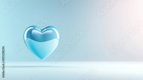 A glossy blue heart floating against a light pastel background, perfect for calm and serene designs.