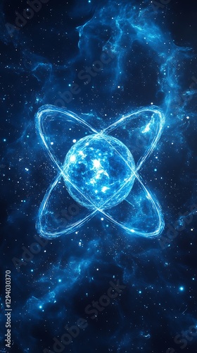 A Glowing Atom Surrounded By Stars In The Sky