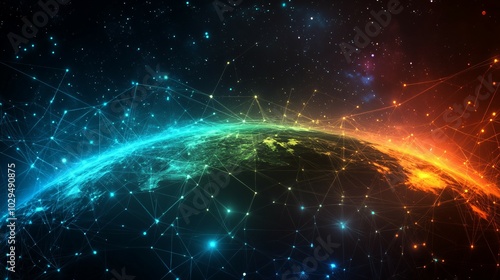 A glowing earth with network connections and starry background