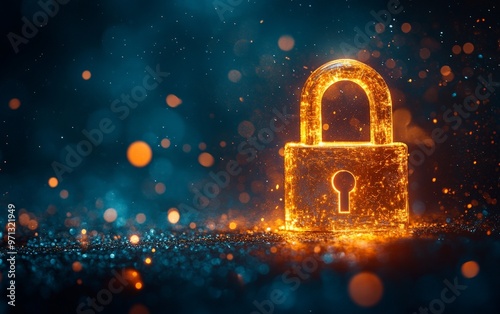 A glowing lock with a keyhole is on a dark background