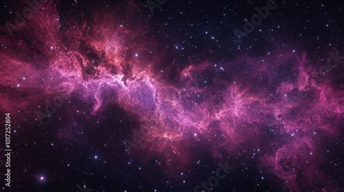 A glowing nebula in shades of pink and violet, with distant stars shining through the cosmic clouds.