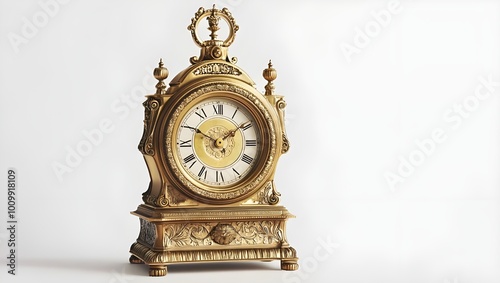 a gold clock with a white face