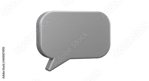 A gray speech bubble with rounded edges and a pointed tail on a white background space