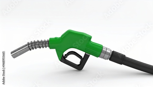A green fuel nozzle ready for refueling, symbolizing energy, sustainability, and the transportation industry