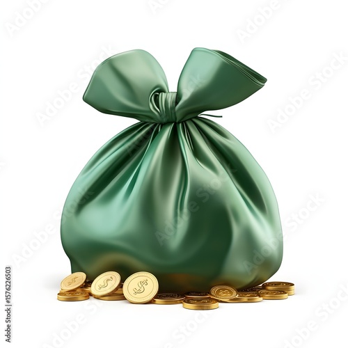 A green silk pouch filled with gold coins.