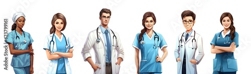 A group of doctors standing next to each other. Generative AI. A set of figures on white.