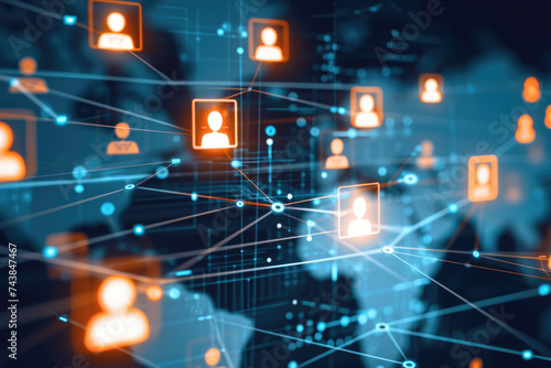 A group of people connected by lines, suitable for technology concepts