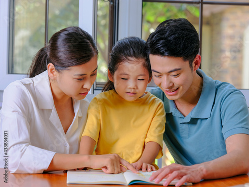 A Happy family of three reading together